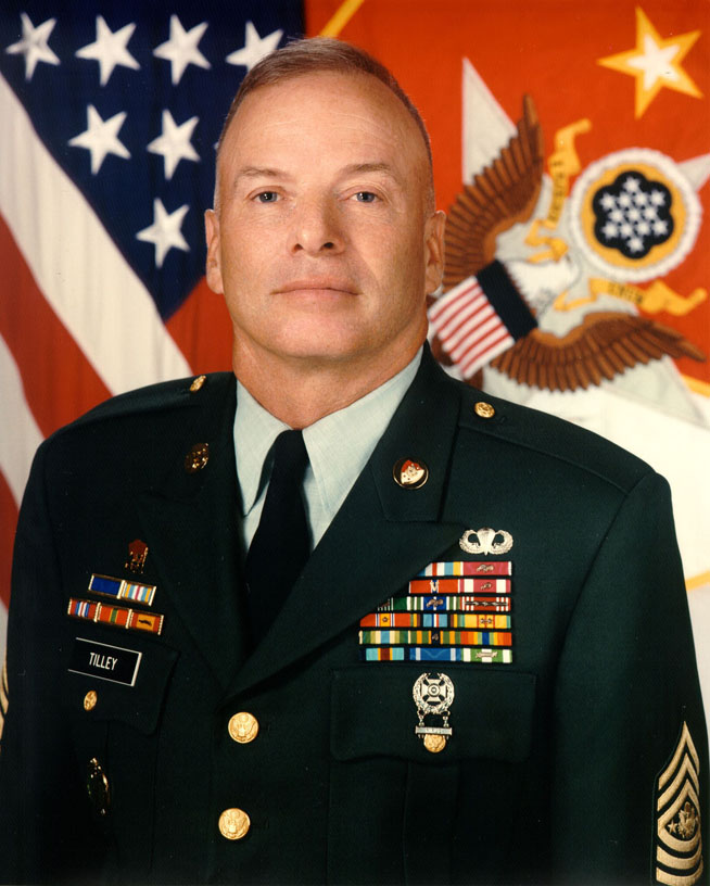 SMA Tilley was born in Vancouver, Washington, on Dec. 3, 1948. He entered the Army in November 1966 and attended basic training at Fort Lewis, Washington, and advanced individual training at Fort Knox, Kentucky. Following tours in Vietnam and Fort Benning, Georgia, SMA Tilley left the Army for two years before enlisting again in September 1971.